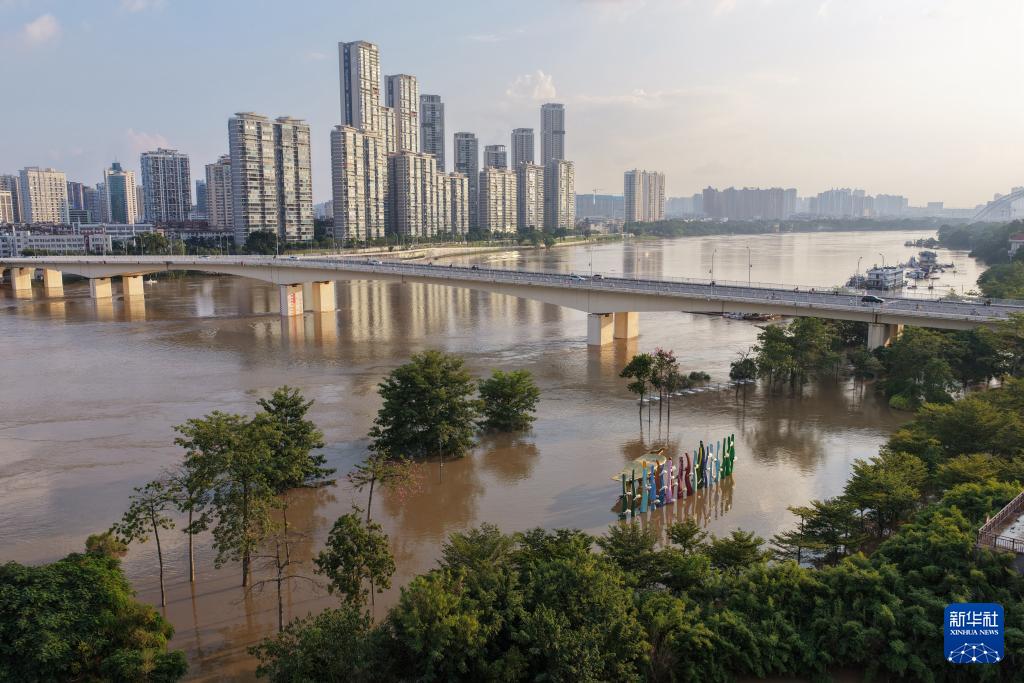 10月8日,邕江南寧市區河段水位不斷上漲(無人機照片)。