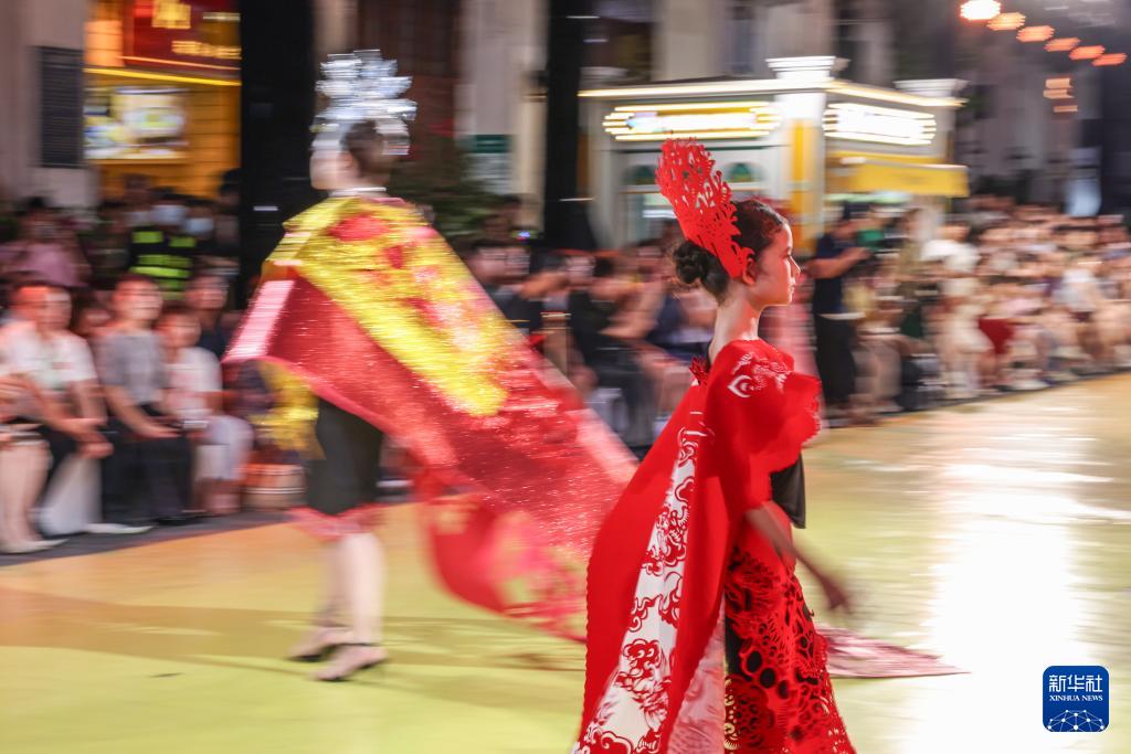 10月7日晚,作為2025海口藝術周系列活動之一,錦色·2025非遺潮秀在海口騎樓老街啟幕。活動以"非遺再創"為核心,將剪紙藝術元素融入時裝走秀。
