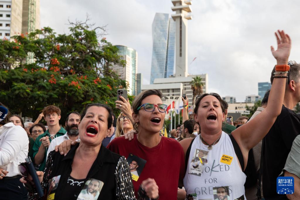 10月9日,在以色列特拉維夫,人們獲悉加沙停火協議的消息后相互慶祝,期待被扣押的人員早日獲釋。