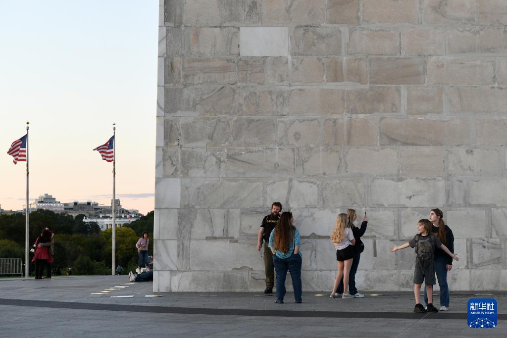 10月8日,在美國華盛頓,人們在華盛頓紀念碑前休閑。
