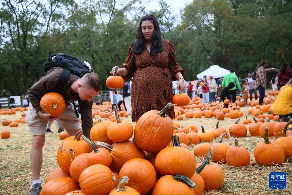 人們在南瓜集市上觀賞、挑選南瓜,慶祝金秋和豐收,為即將到來的萬圣節做準備。