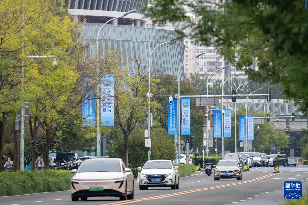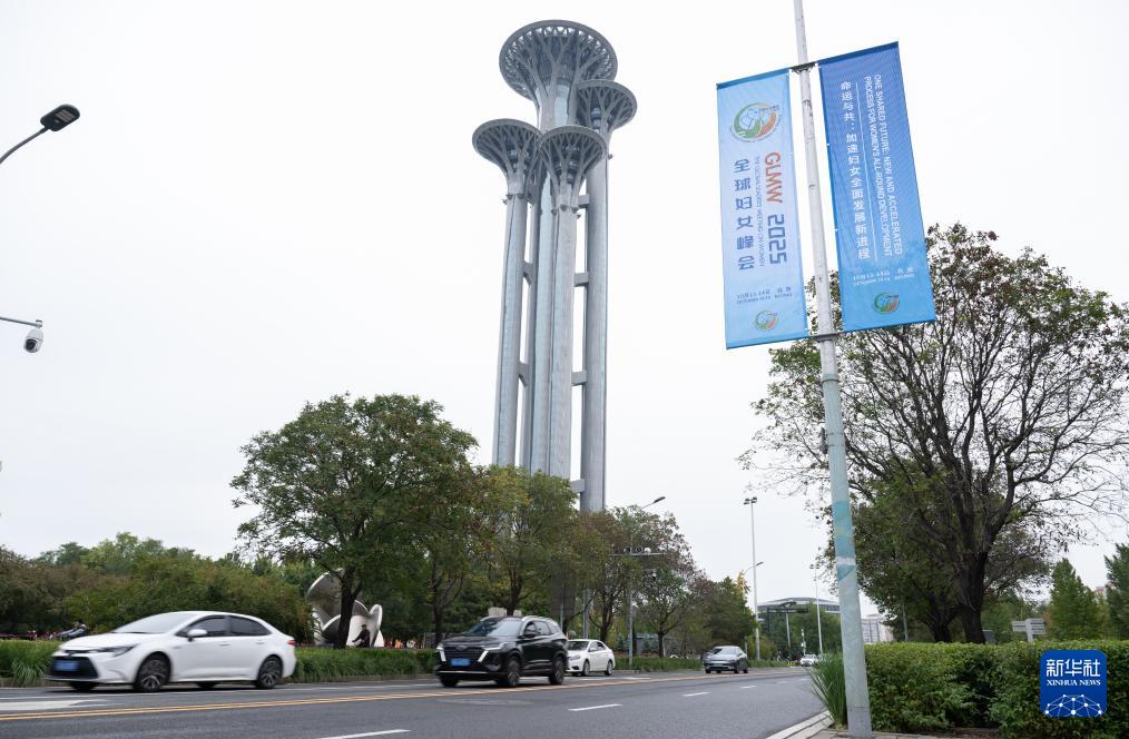 這是10月12日在北京街頭拍攝的全球婦女峰會道旗。