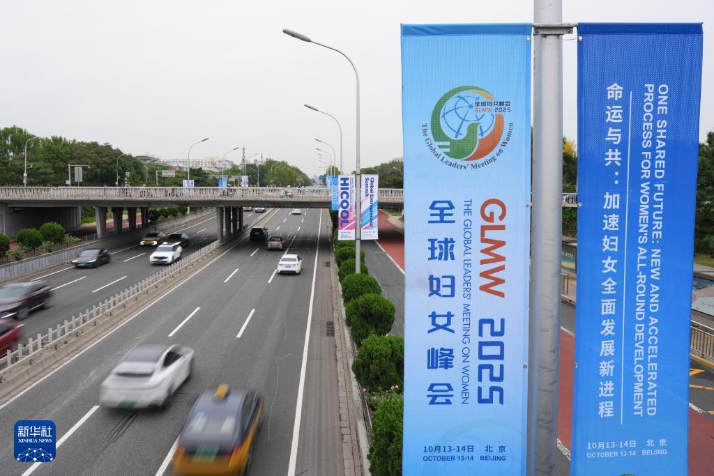 這是10月11日在北京街頭拍攝的全球婦女峰會道旗。