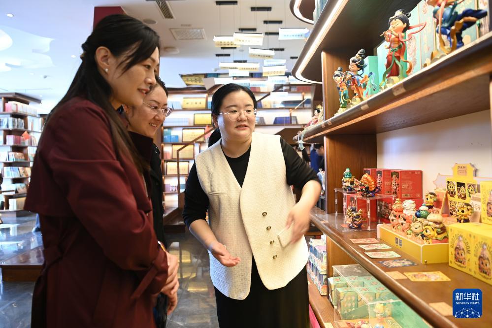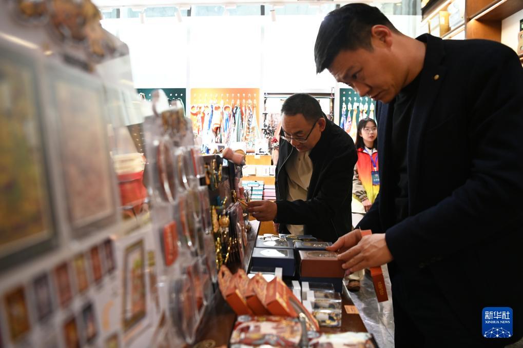 10月11日,游客在敦煌書局選購文創(chuàng)產(chǎn)品。