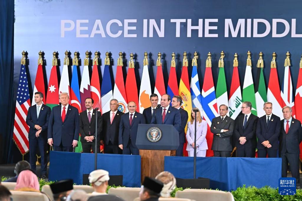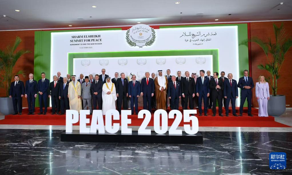 10月13日,在埃及沙姆沙伊赫,與會(huì)領(lǐng)導(dǎo)人在峰會(huì)前集體合影。新華社發(fā)(埃及總統(tǒng)府供圖)