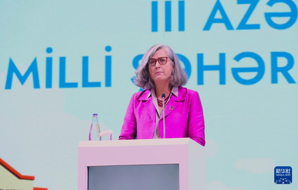 10月15日,聯(lián)合國(guó)副秘書長(zhǎng)、聯(lián)合國(guó)人類住區(qū)規(guī)劃署(人居署)執(zhí)行主任羅斯巴赫在阿塞拜疆漢肯德舉行的第三屆阿塞拜疆國(guó)家城市論壇開幕式上致辭。新華社記者 陳俊鋒 攝