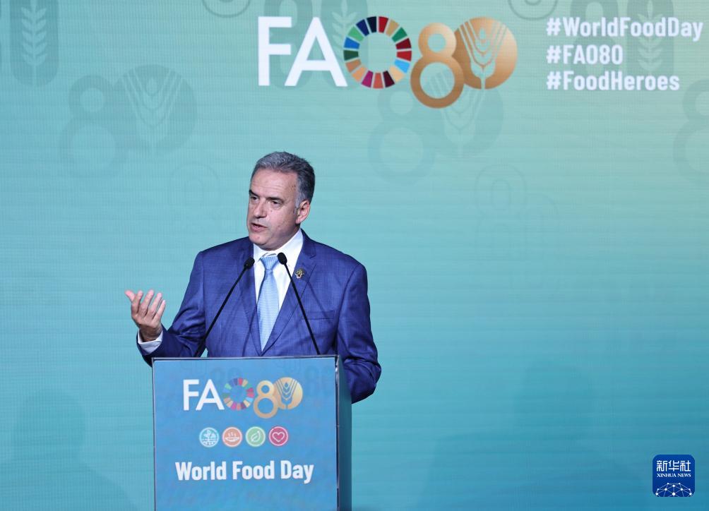 當日,世界糧食日暨聯合國糧食及農業組織成立80周年慶祝活動在意大利羅馬舉行。