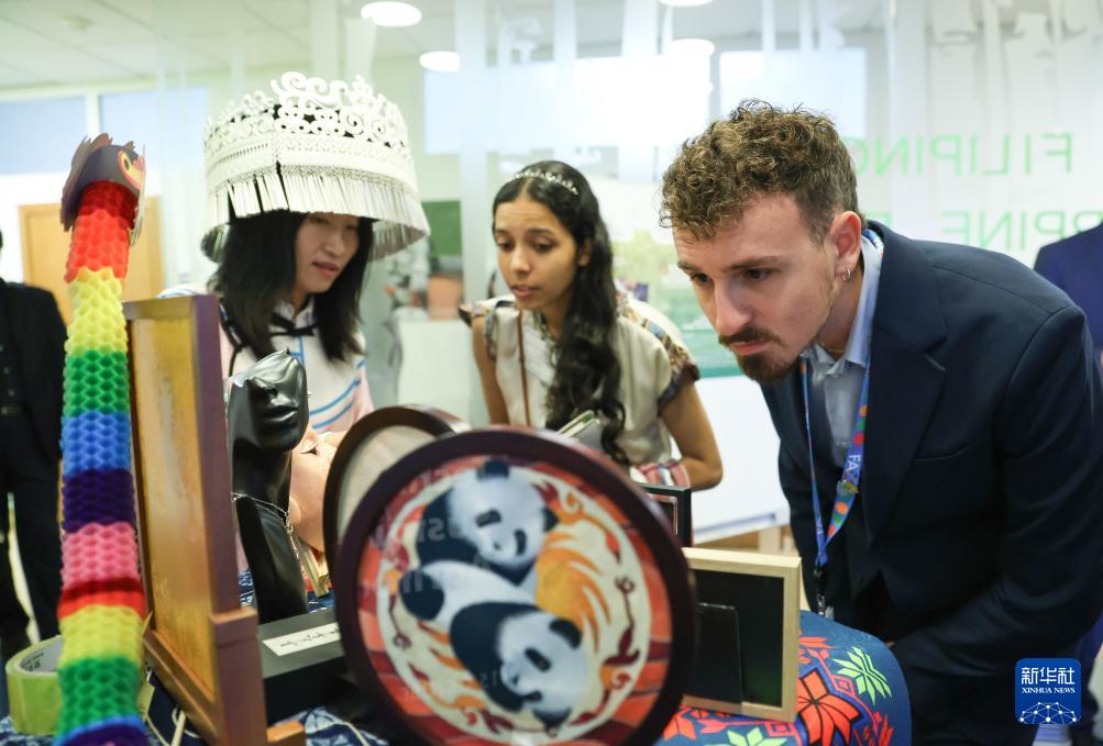 10月15日,在意大利羅馬舉行的“青禾農遺對話會”上,嘉賓參觀中國非遺產品展臺。