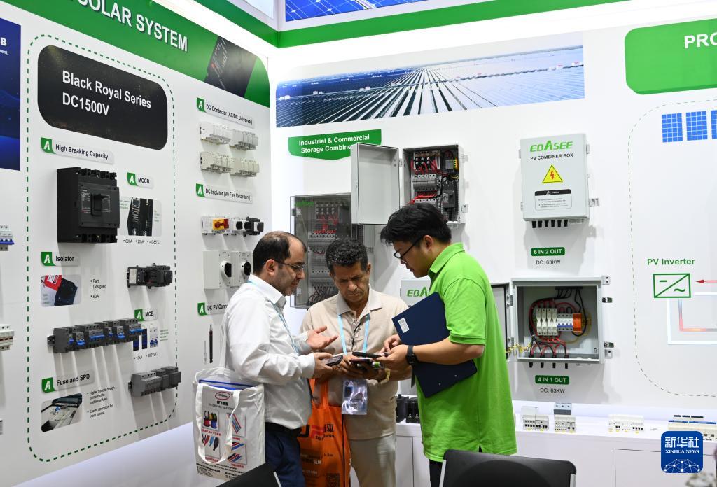10月19日,客商與展商在第138屆廣交會(huì)展館日月元科技(深圳)有限公司展臺(tái)交談。