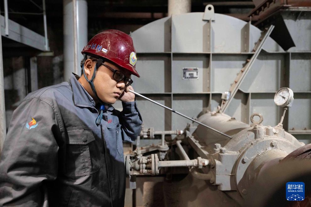 10月20日,在哈爾濱市華能集中供熱有限公司,工作人員在檢測設備運行情況。