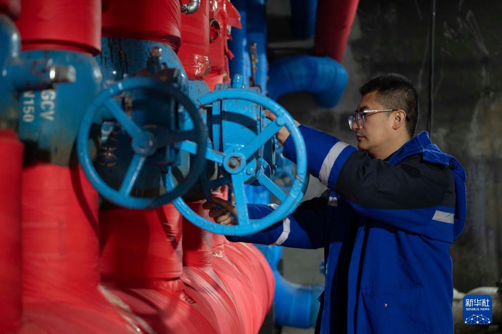 10月20日,在哈爾濱市北五道街85號提標增效換熱站,工作人員在調整閥門。