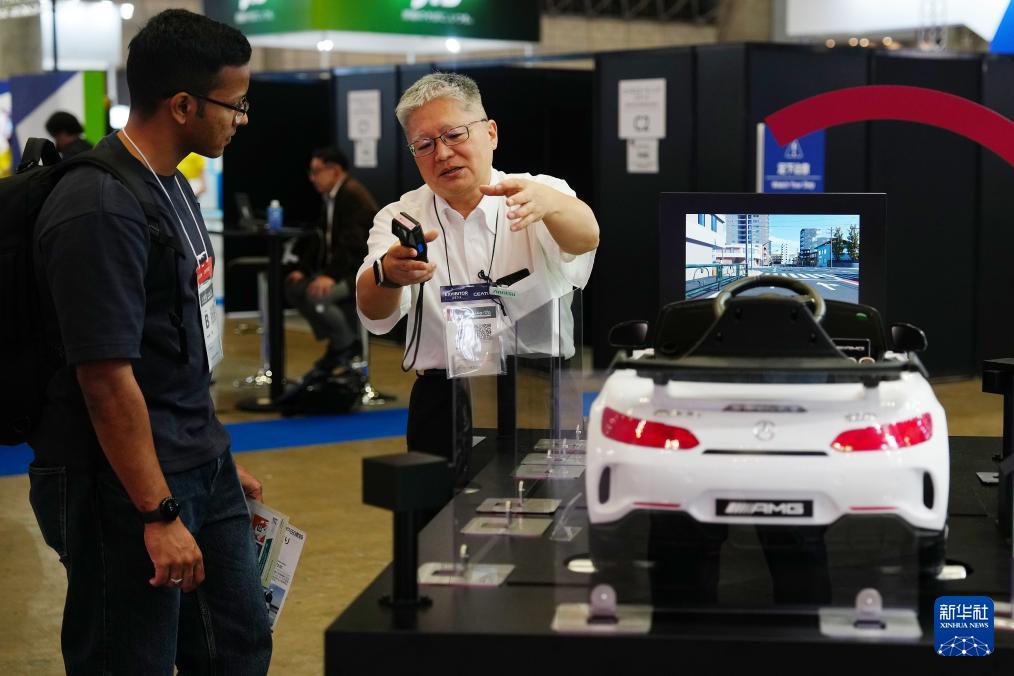 10月14日,在日本千葉縣,工作人員在2025年日本高新技術博覽會上向參會者介紹智能駕駛技術。