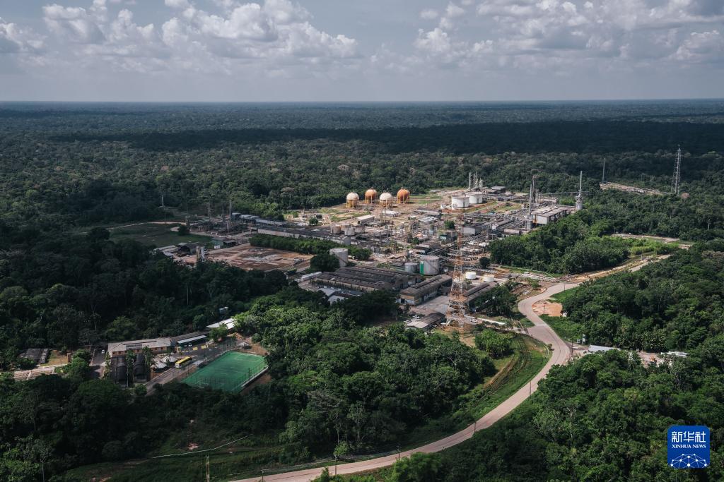 這是10月17日在巴西亞馬孫州拍攝的烏魯庫油氣生產(chǎn)基地的生產(chǎn)設(shè)施區(qū)(航拍照片)。