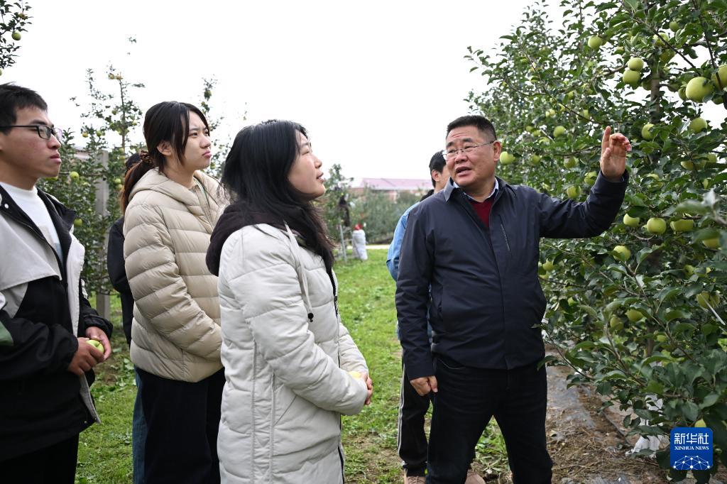 10月21日,西北農林科技大學白水蘋果試驗站首席專家趙政陽教授在試驗站給學生講授蘋果相關知識。