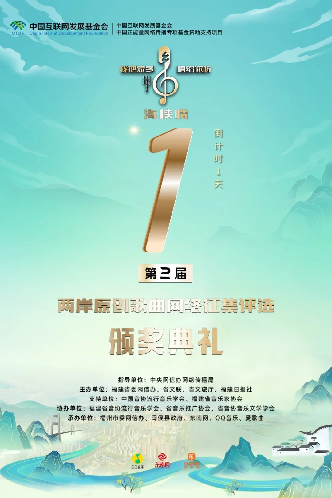 明天!明天!明天! 第二屆“我把家鄉唱給你聽·海峽情” 兩岸原創音樂網絡征集評選活動 暨“我把家鄉唱給你聽·海絲情” 優秀華文歌曲網絡征集大賽 頒獎典禮 即將在福州大學城文化藝術中心 拉開帷幕! 黃慶元、余忠元、李春波、吳瑞峰 等眾多兩岸音樂唱作人 及海外嘉賓、網紅博主 將齊聚福州 共赴“海峽情”“海絲情”榮耀時刻 頒獎典禮上,福州大學附屬實驗學校管樂團將用交響樂奏響《福州拗九謠》,美國人胡安攜手福州本土歌手賴董芳、土豆、李盼盼、三嬸婆演唱為閩侯量身定制的歌曲《閩侯嗻俊》,曾多次投身于中菲文化交流盛事、來自菲律賓的歌手LEN LEN帶來一首《Hero》,馬來西亞歌手Hanson柏諺唱起閩南語歌曲《勇敢的河洛人》,《等雨來》《侯官是我家》等近些年涌現出的福建原創優秀歌曲也將唱響。還有超級小包總、第一次小姐姐、若有所思、小熊旅記等30多位網紅博主到場助力,敬請期待。 活動還請來歌手李春波現場對話,談談家鄉在音樂人心中的情結,獻唱《一封家書》《小芳》等經典歌曲。 本次活動另一大亮點 在閩侯尋根的臺灣音樂人黃慶元 有著怎樣的家鄉情、海峽情 明晚正式揭曉 近日,臺灣著名音樂人、《把根留住》詞作者黃慶元在福建福州閩侯縣展開尋根之旅,引發關注。作為資深音樂人,黃慶元曾為劉德華、張學友等歌手創作《今天》《吻別》等經典作品,他的尋根結果將在現場揭秘。來自兩岸的歌手林偉龍、吳瑞峰將共同演唱《把根留住》。
