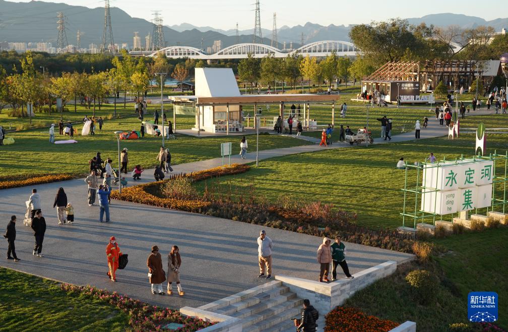 時值周末,許多游客來到位于北京市石景山區的“永定河集”,在這里逛市集,爬石景山,賞永定河畔風景,樂享秋日美好時光。