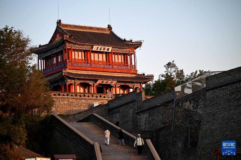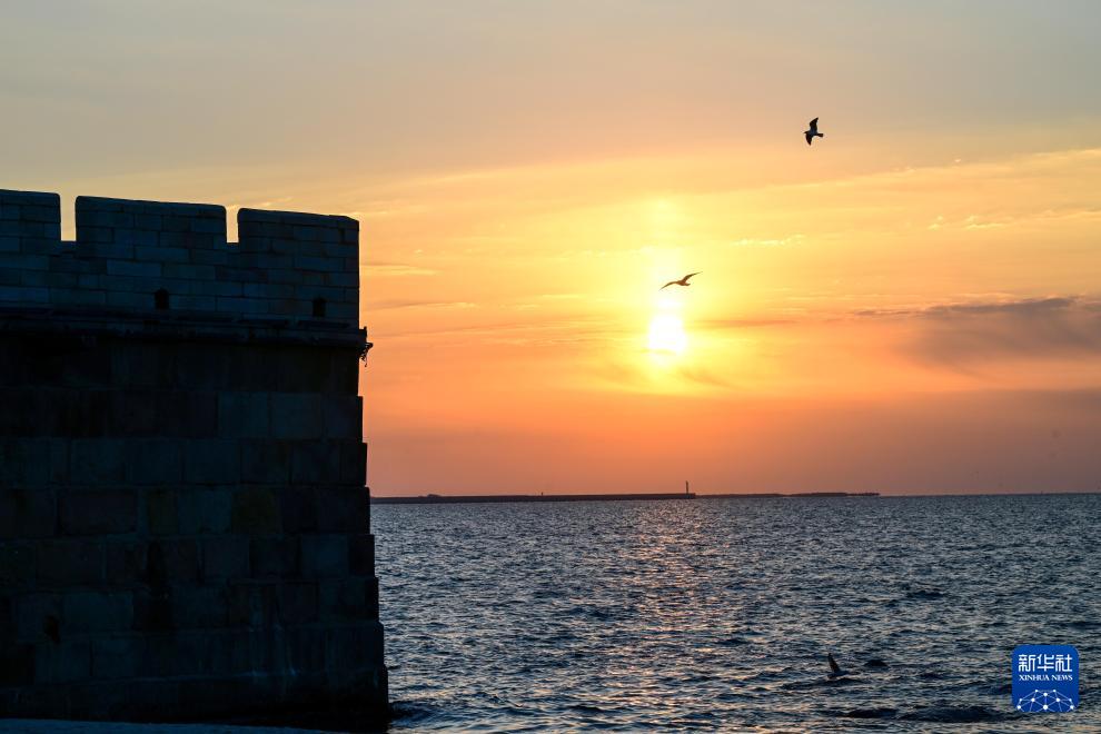 10月26日拍攝的晨曦中的老龍頭景區(qū)澄海樓。