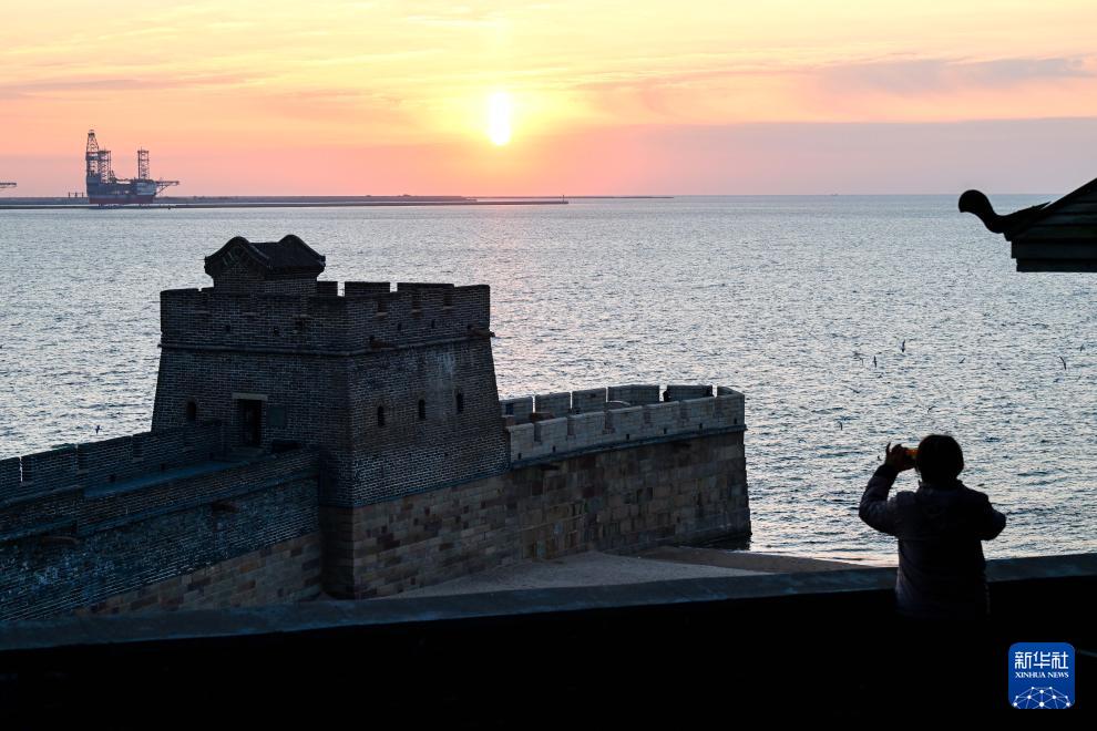 10月26日,沐浴在晨光中的河北秦皇島山海關(guān)老龍頭,與海面光影交錯(cuò),盡顯雄渾氣象。