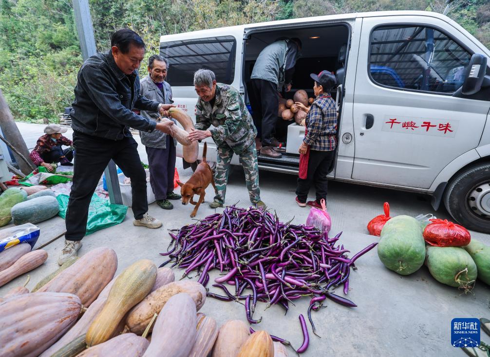 10月27日,愛心餐飲企業(yè)的工作人員把收購的各類農(nóng)特產(chǎn)品裝車準備運往杭州。