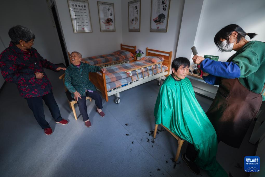 10月28日,在嘉興市南湖區(qū)七星街道湘城社區(qū)公共開放空間,志愿者為老人理發(fā)。