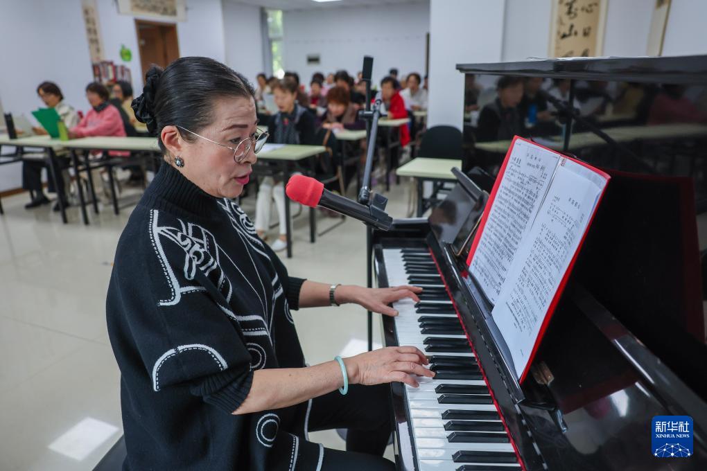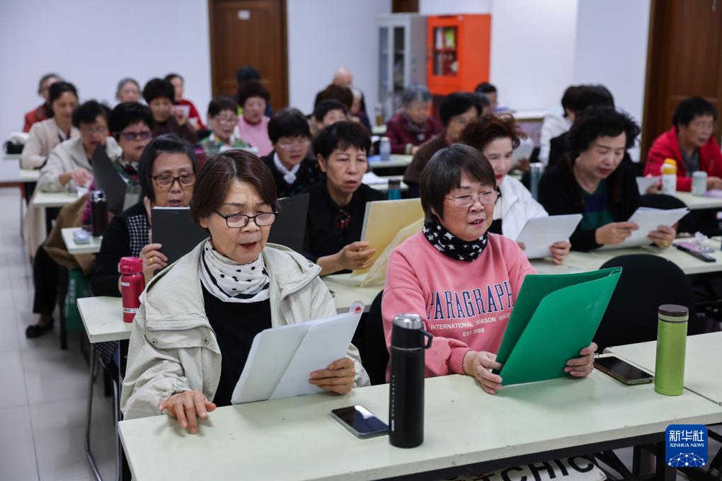 10月28日,在嘉興市南湖區(qū)南湖街道文星社區(qū)文化活動(dòng)室,老師給社區(qū)老年合唱班的成員上課。