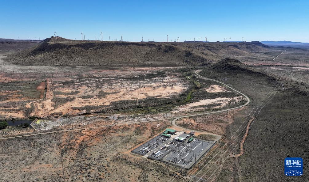這是10月22日在南非北開普省德阿鎮(zhèn)拍攝的德阿風電項目風機和變電站(無人機照片)。