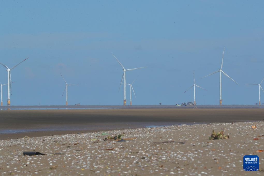 這是10月14日在越南永隆省拍攝的平大海上風電項目的風機。新華社記者 劉潁 攝
