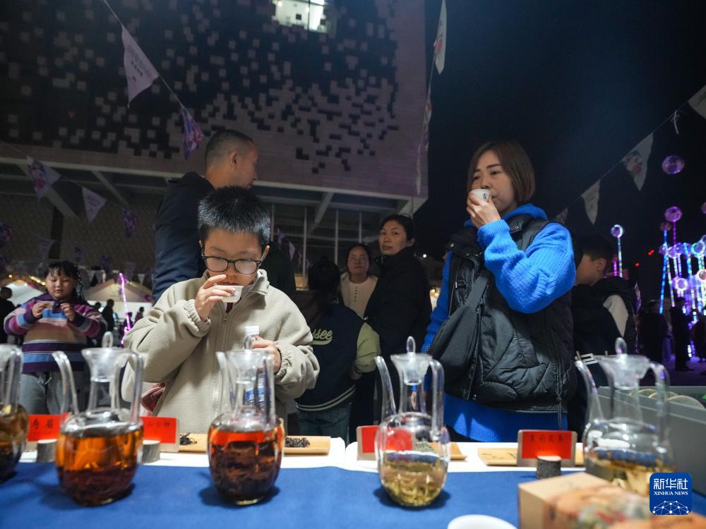 11月1日,在四川省眉山市彭山區,游客在非遺市集品嘗當地特色彭山武陽茶。