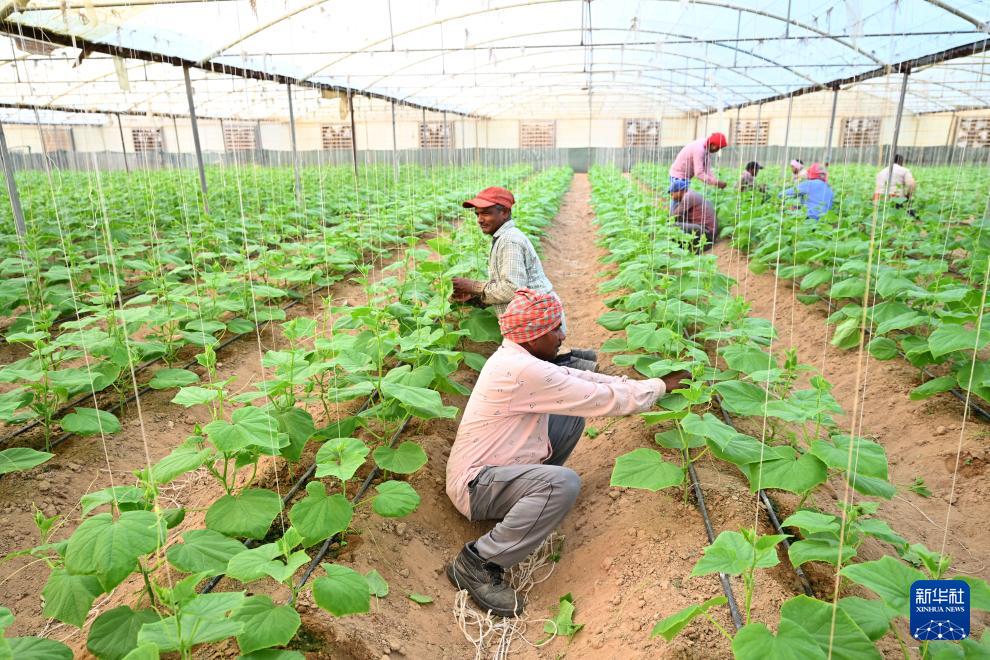 10月31日,在科威特艾哈邁迪省沃夫拉地區,工人們在大棚中忙碌。