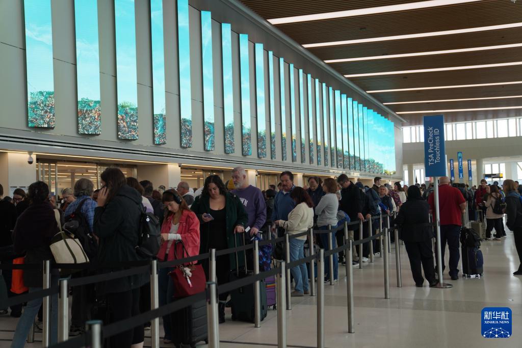 10月31日,在美國(guó)紐約拉瓜迪亞機(jī)場(chǎng),乘客排隊(duì)值機(jī)。