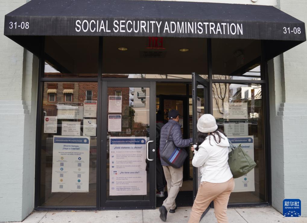 10月31日,在美國紐約,人們走進一處社會安全局服務中心。