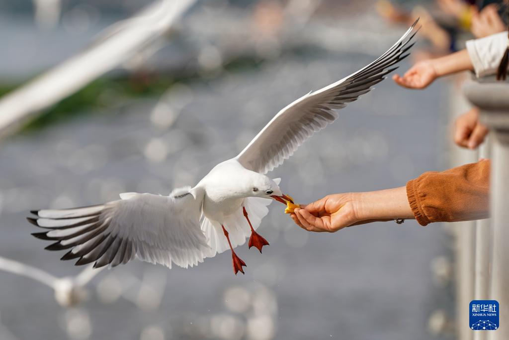 近日,紅嘴鷗如往年一樣從西伯利亞等地飛抵云南昆明,成為“春城”一道靈動的風(fēng)景,吸引市民與游客前往觀賞、互動。