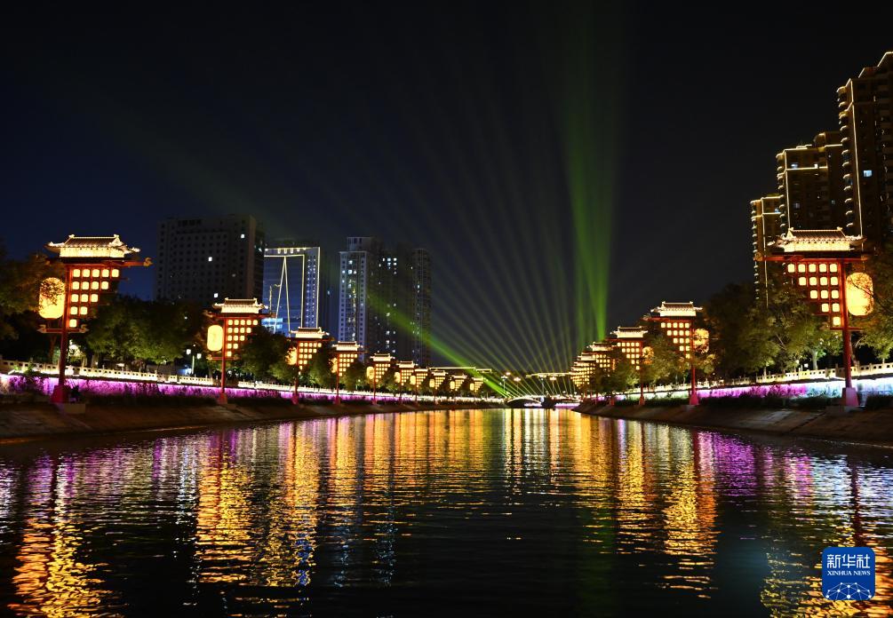 河北省滄州市運(yùn)河區(qū)大運(yùn)河夜色(10月29日攝)。
