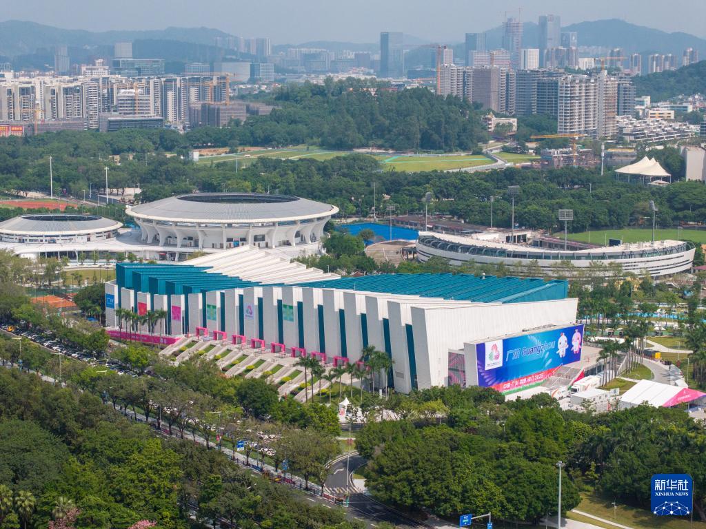 位于廣州的廣東省奧體中心游泳跳水館(10月17日攝,無人機照片)。全運會跳水、水球比賽在這里舉行。