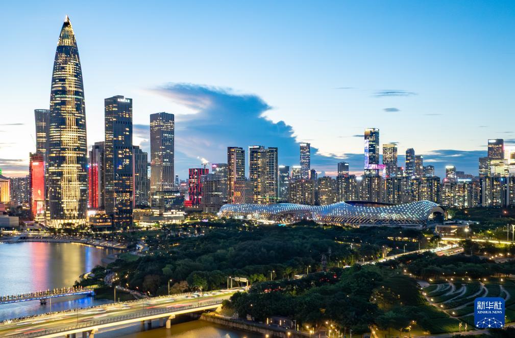 深圳灣體育中心以及周邊道路(6月25日攝,無人機照片)。全運會馬拉松比賽從深圳灣體育中心周邊道路起跑,以深圳灣大橋為紐帶,橫跨深圳、香港兩地,最后回到深圳灣體育中心。