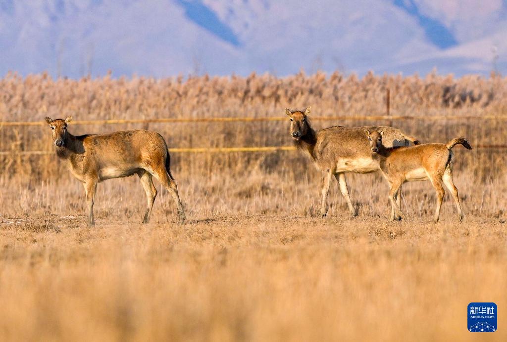 青銅峽庫區(qū)濕地自然保護(hù)區(qū)總面積174.93平方公里,是寧夏最大的黃河灘涂類型濕地。2024年9月底,35頭麋鹿落戶青銅峽庫區(qū)濕地自然保護(hù)區(qū),經(jīng)過一個月適應(yīng)期后被野放在200余畝的圍欄內(nèi)。目前,隨著6只麋鹿幼崽的誕生,當(dāng)?shù)伧缏狗N群繁育工作邁入新階段,放歸區(qū)域從200余畝擴(kuò)展至3000余畝,保護(hù)工作也從遷地?cái)U(kuò)繁轉(zhuǎn)向野化放歸,開啟了黃河流域?qū)幭亩紊锒鄻有员Wo(hù)的新篇章。