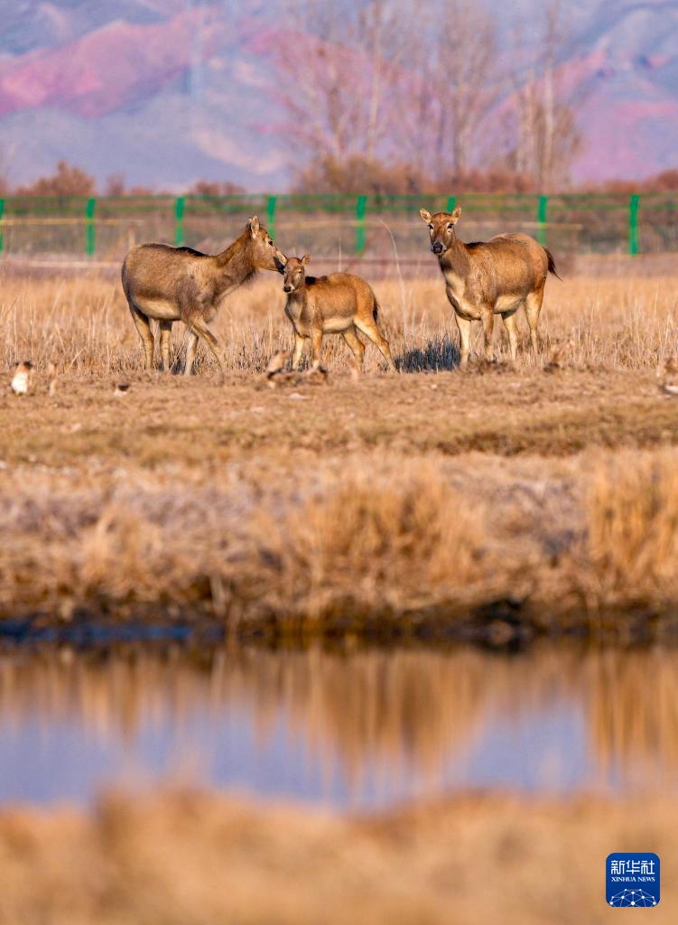 青銅峽庫區(qū)濕地自然保護(hù)區(qū)總面積174.93平方公里,是寧夏最大的黃河灘涂類型濕地。2024年9月底,35頭麋鹿落戶青銅峽庫區(qū)濕地自然保護(hù)區(qū),經(jīng)過一個(gè)月適應(yīng)期后被野放在200余畝的圍欄內(nèi)。目前,隨著6只麋鹿幼崽的誕生,當(dāng)?shù)伧缏狗N群繁育工作邁入新階段,放歸區(qū)域從200余畝擴(kuò)展至3000余畝,保護(hù)工作也從遷地?cái)U(kuò)繁轉(zhuǎn)向野化放歸,開啟了黃河流域?qū)幭亩紊锒鄻有员Wo(hù)的新篇章。