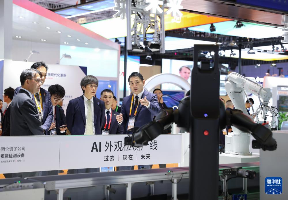 11月5日,觀眾在第八屆進博會技術裝備展區三菱電機展臺了解AI外觀檢測產線。