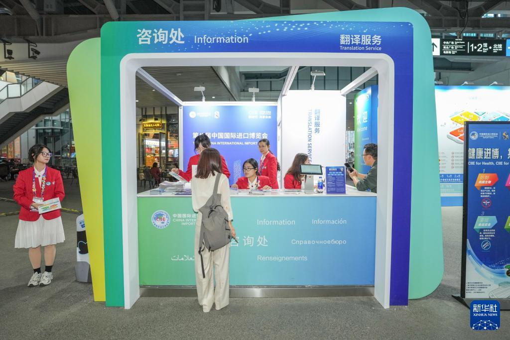 11月5日,志愿者在咨詢處為參會人員提供服務。