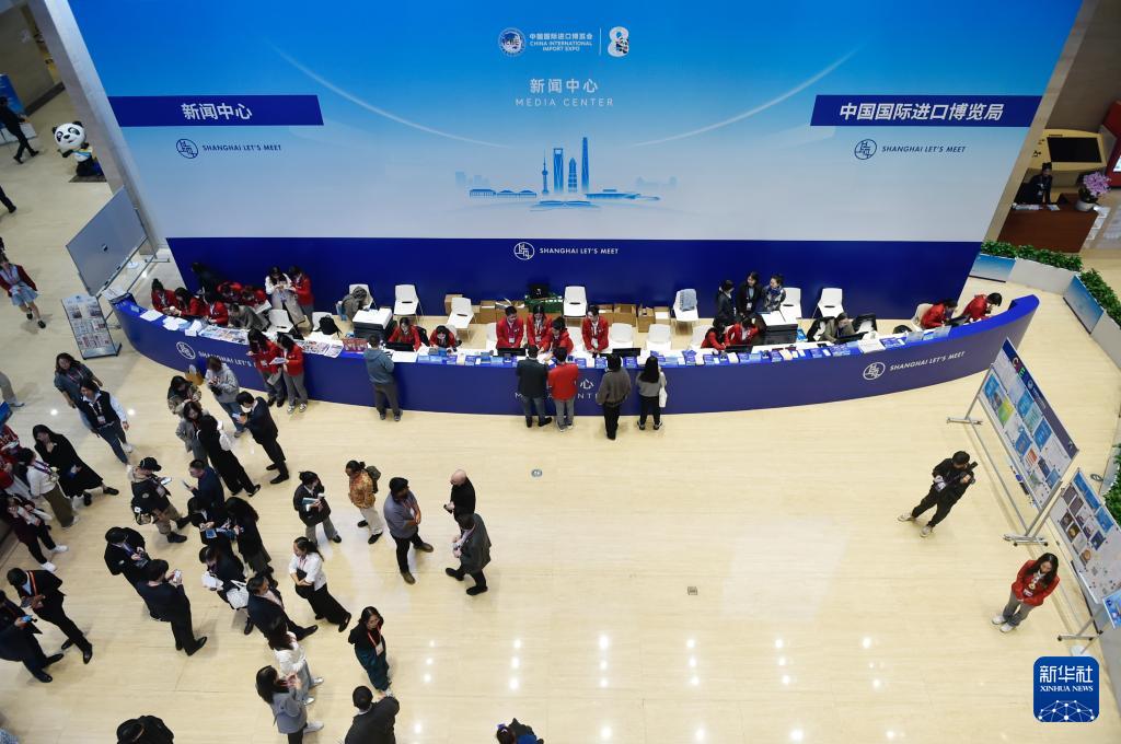 這是11月5日拍攝的第八屆進博會新聞中心內景。