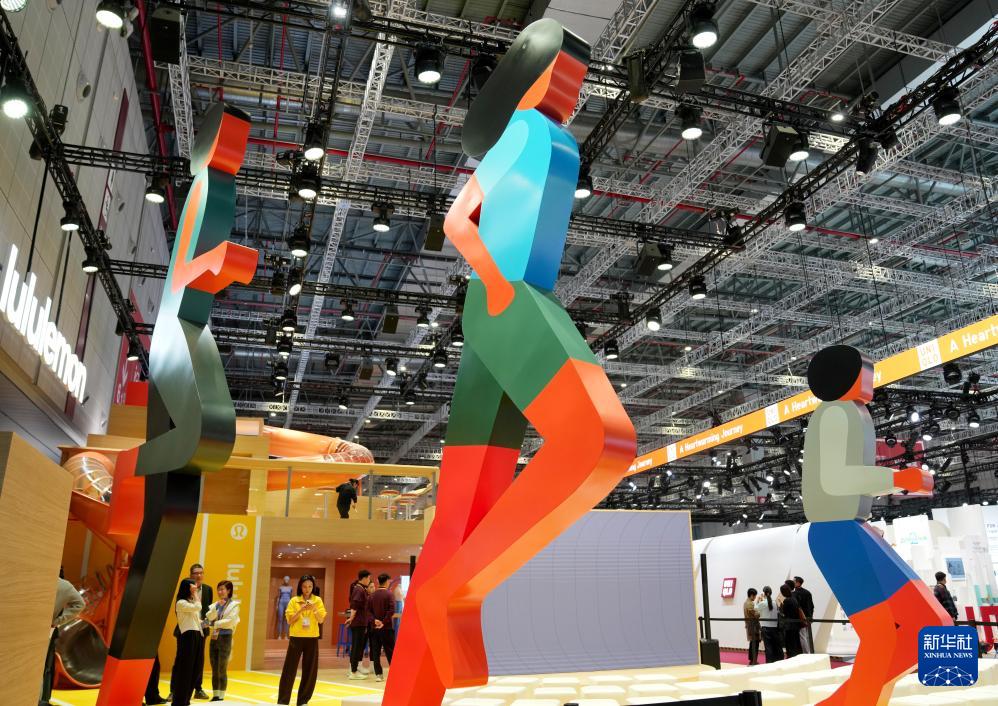 這是11月5日在第八屆進博會消費品展區拍攝的露露樂蒙(lululemon)展臺。
