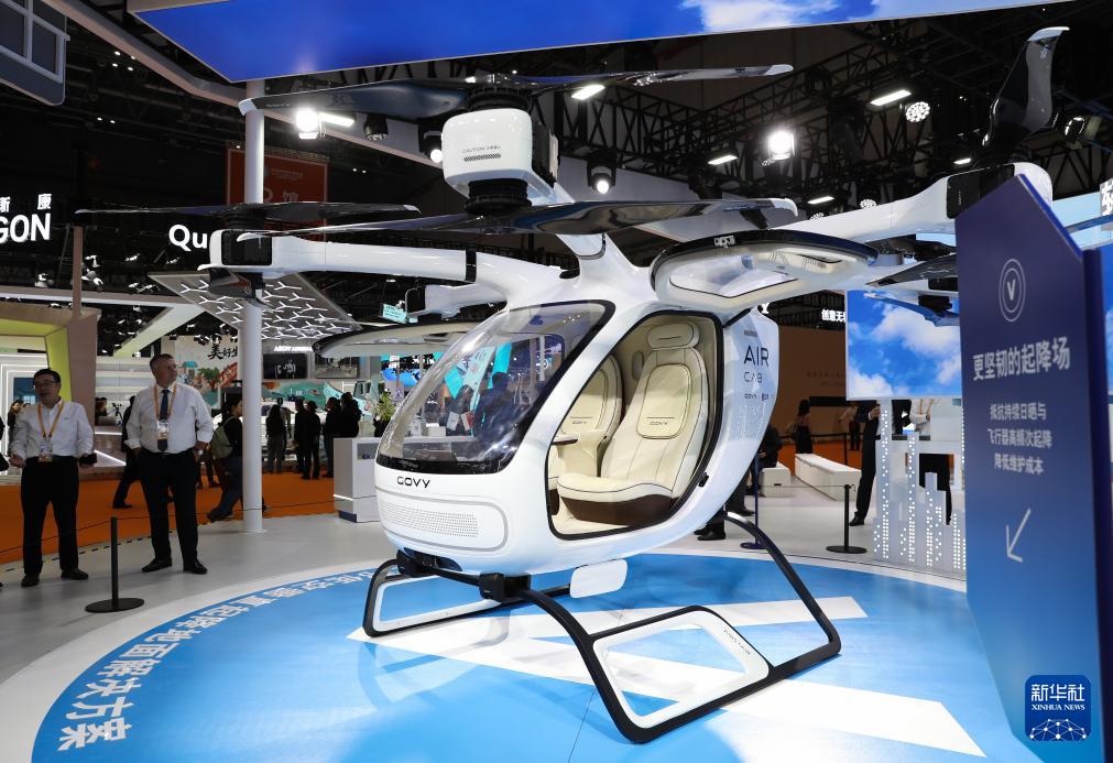 這是11月5日在第八屆進(jìn)博會(huì)技術(shù)裝備展區(qū)立邦展臺(tái)拍攝的“低空飛行全域涂裝解決方案”展示。