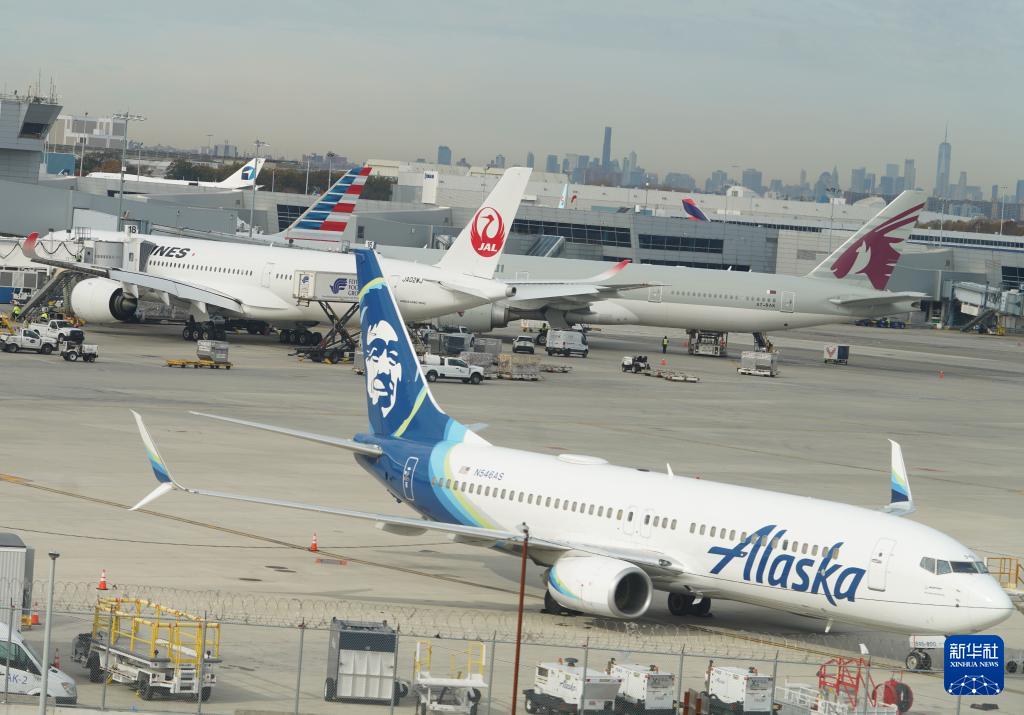 這是11月5日在美國紐約拍攝的肯尼迪國際機場停機坪上的飛機。
