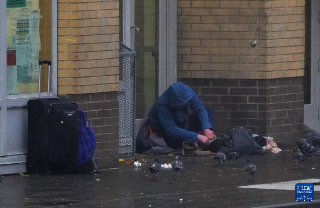 11月5日清晨,在美國俄勒岡州波特蘭的深秋寒意中,無家可歸者蜷縮在街邊角落里。