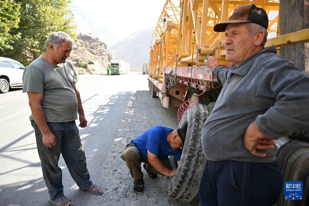 9月11日,司機們在塔吉克斯坦卡拉依洪姆村附近一家旅店外休整。