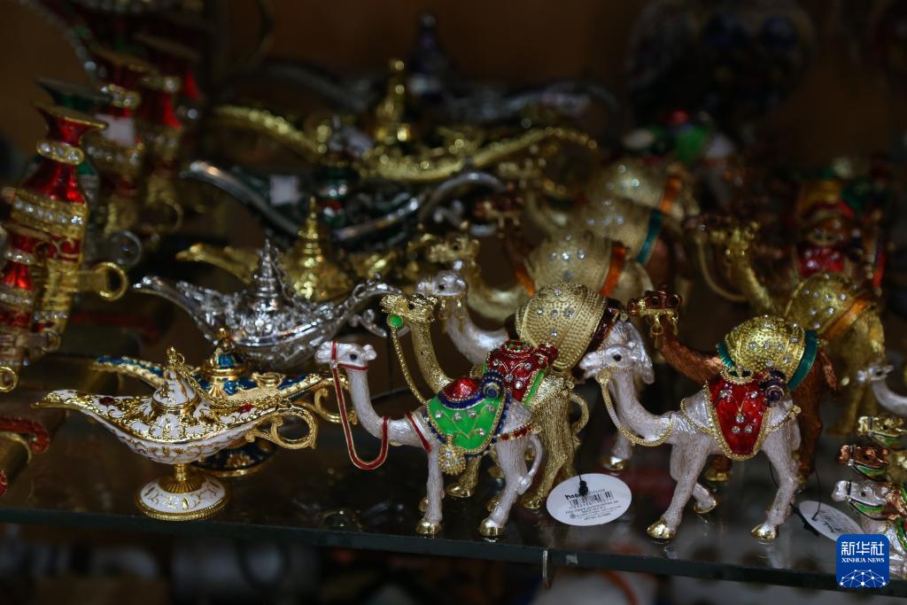 這是11月4日在卡塔爾首都多哈一處巴扎(集市)拍攝的旅游紀(jì)念品。