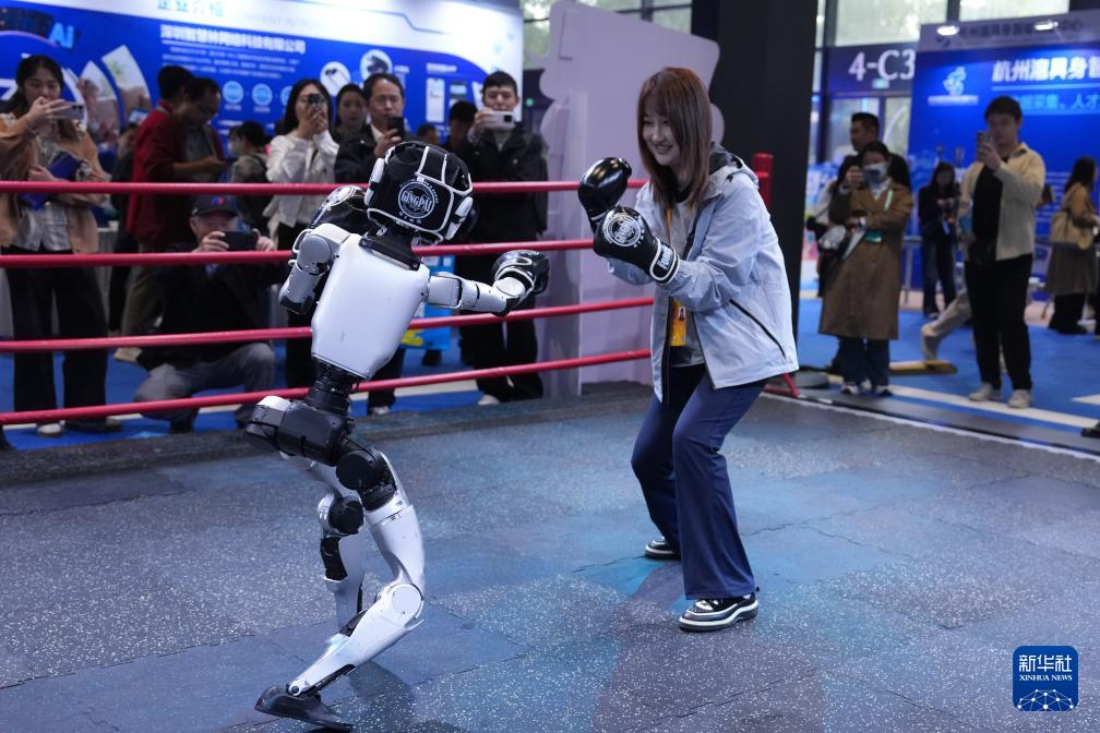 11月6日,觀眾在2025年世界互聯(lián)網(wǎng)大會(huì)“互聯(lián)網(wǎng)之光”博覽會(huì)現(xiàn)場體驗(yàn)與宇樹科技G1機(jī)器人“格斗”。