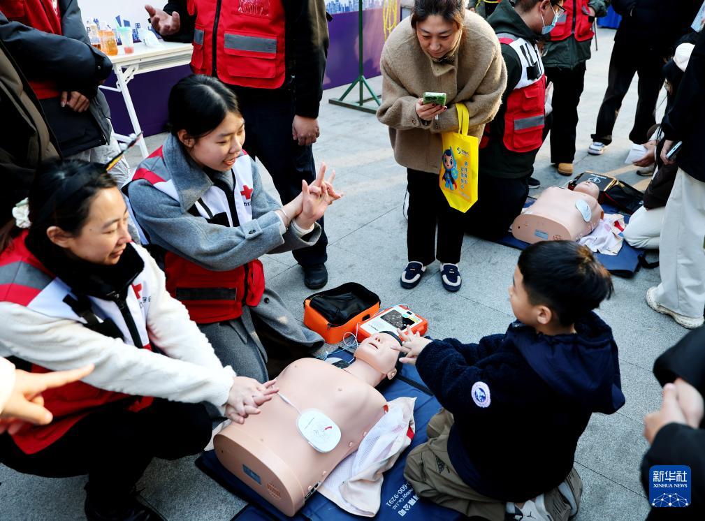 11月9日,在沈陽市中街商業(yè)步行街,紅十字會(huì)工作人員講授心肺復(fù)蘇急救知識(shí)。