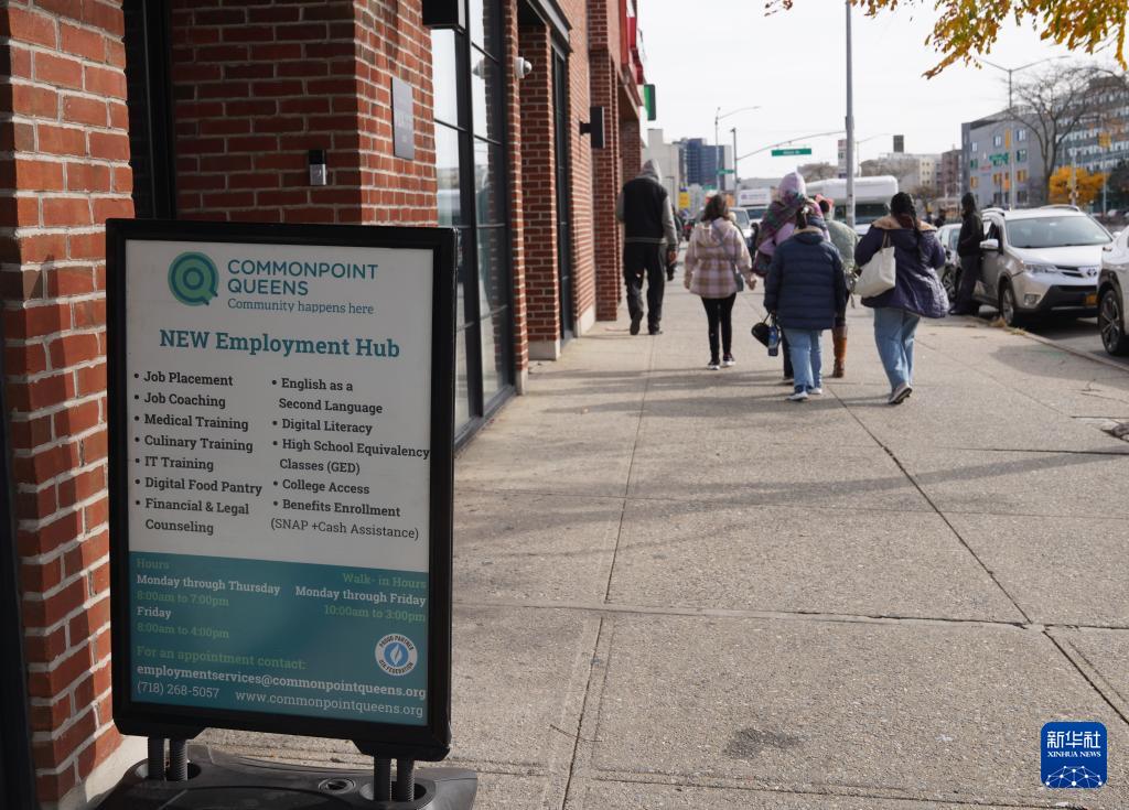 11月7日,人們走過美國紐約一處社區就業服務站。