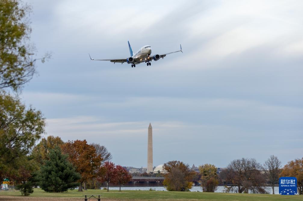 11月7日,一架美國聯合航空公司飛機準備降落在美國弗吉尼亞州阿靈頓的里根國家機場。
